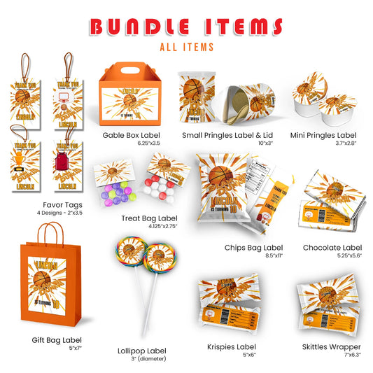Basketball Personalized Digital Template Party Pack Bundle | Custom Printable Party Decor