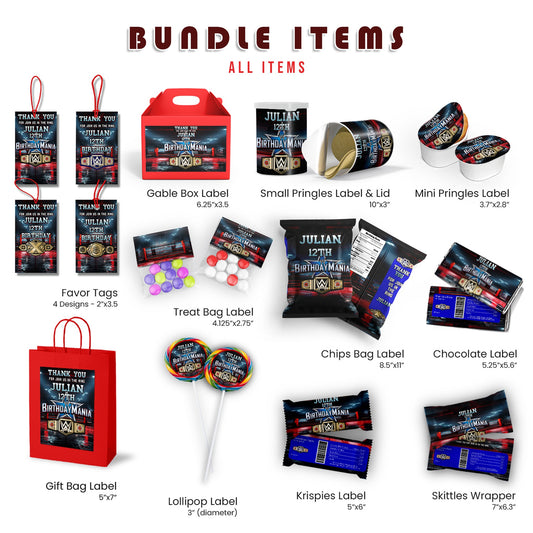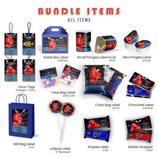 Boxing Personalized Digital Template Party Pack Bundle for Birthday Party Decorations
