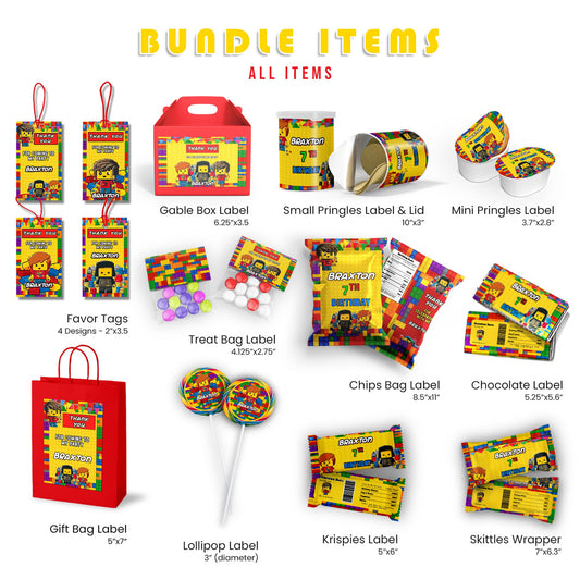 Brick Personalized Digital Template Party Pack Bundle printable birthday decorations