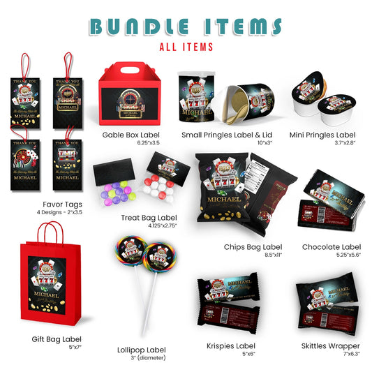 Casino Personalized Digital Template Party Pack Bundle Editable Birthday Decorations