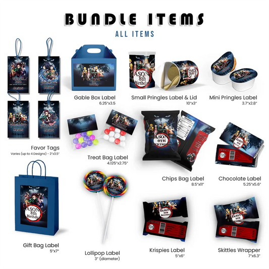 Demon Slayer Party Pack Bundle Personalized Digital Template