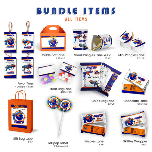 Dart Gun Personalized Digital Template Party Pack Bundle for Printable Party Decorations
