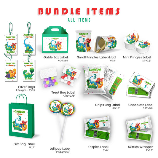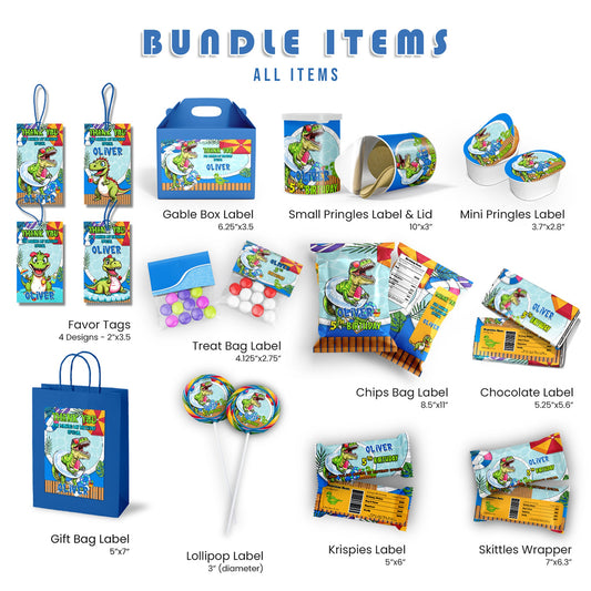 Dinosaur Personalized Digital Template Party Pack Bundle for Kids Birthday Decorations