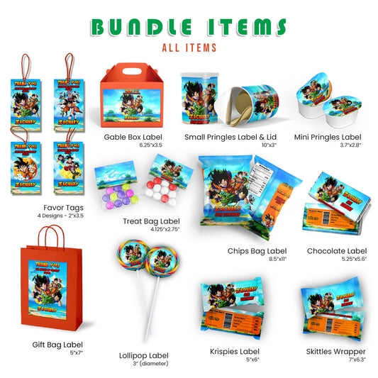 Dragon Ball Personalized Digital Template Party Pack Bundle for Birthday Party Decorations