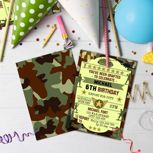 Army Personalized Birthday Card Invitations - Invite Your Troops in Style