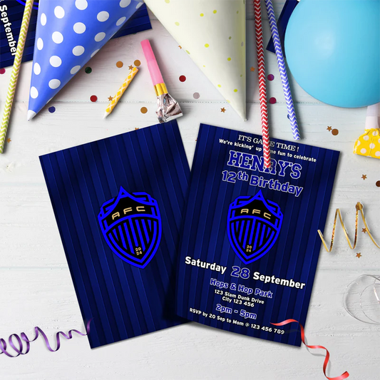 Auckland FC Birthday Card Invitations Custom Printable for Football Fans