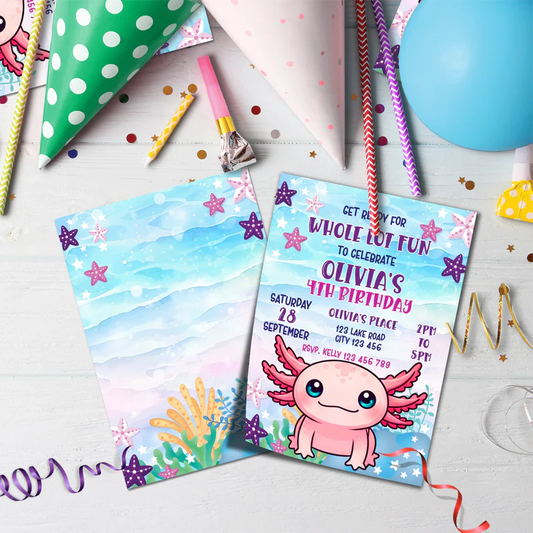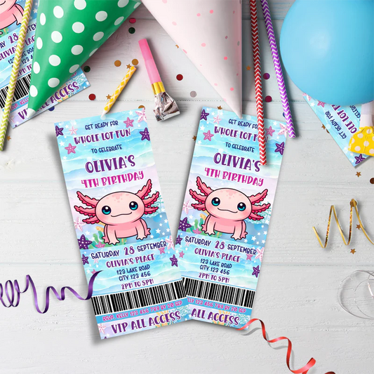 Axolotl Birthday Ticket Invitations Custom Party Invite