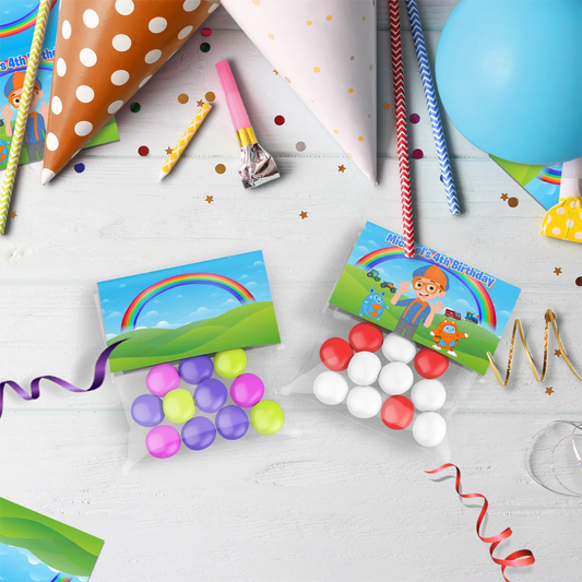 Blippi goodie bag labels for themed kids party bags