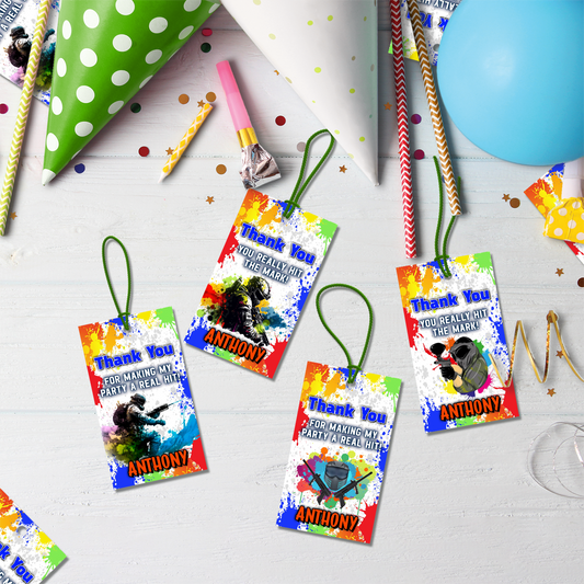 Favor Tags/Thank You Tags for Paint Ball Games, Show Your Appreciation in Style