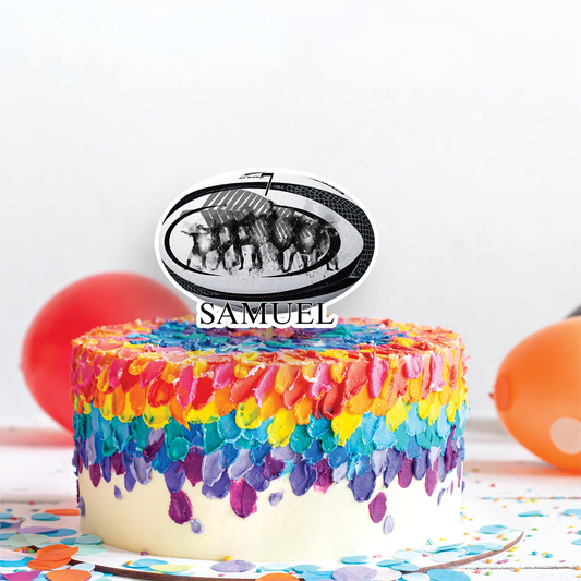 • Rugby NZ Personalized Cake Toppers featuring custom designs and party details