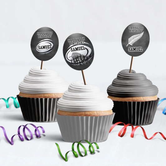 • Rugby NZ Personalized Cupcakes Toppers with custom rugby themes