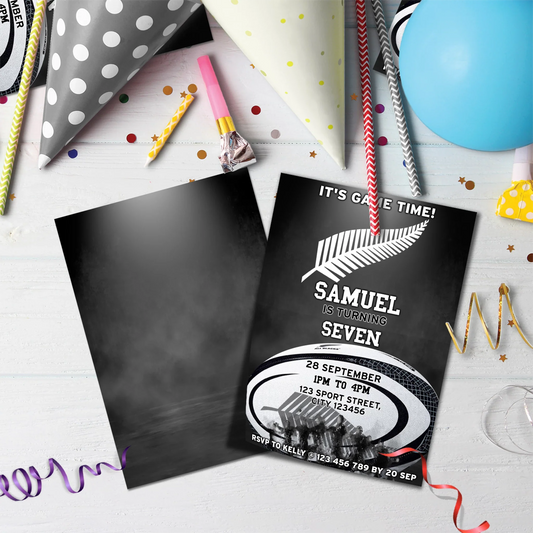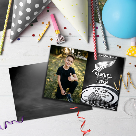• Rugby NZ Personalized Birthday Card Invitations with unique party details