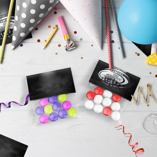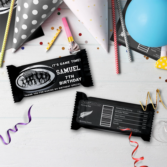 • Rugby NZ Skittles Label with custom sporty designs for party favors