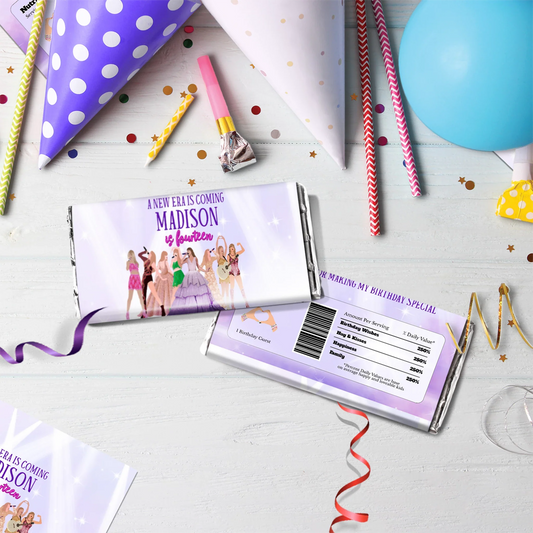 • Taylor Swift Chocolate Label with personalized designs for sweet treats