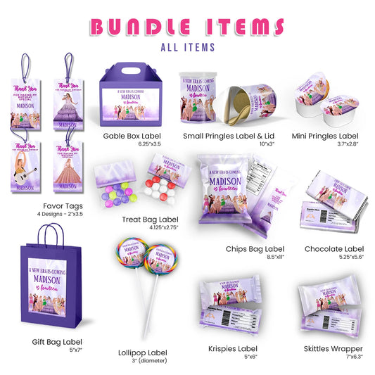 Taylor Swift Personalized Digital Template Party Pack Bundle for unique party designs