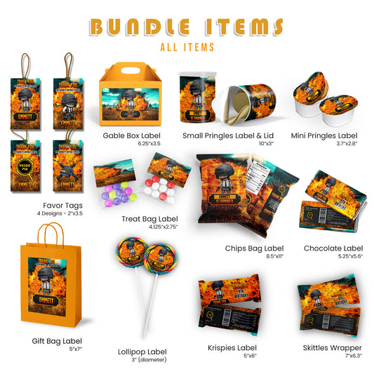 PUBG Personalized Digital Template Party Pack Bundle Editable Birthday Decorations