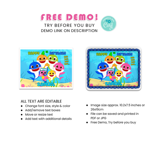 Rectangle Baby Shark Personalized Cake Images : Make Your Party Unique