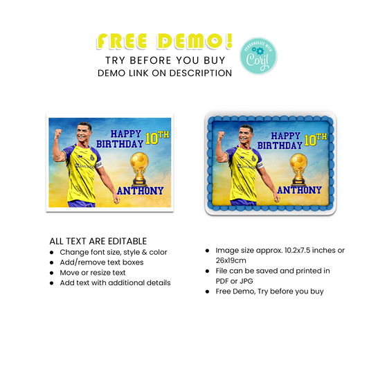 Rectangle Cristiano Ronaldo Personalized Cake Images - Make Your Party Stand Out