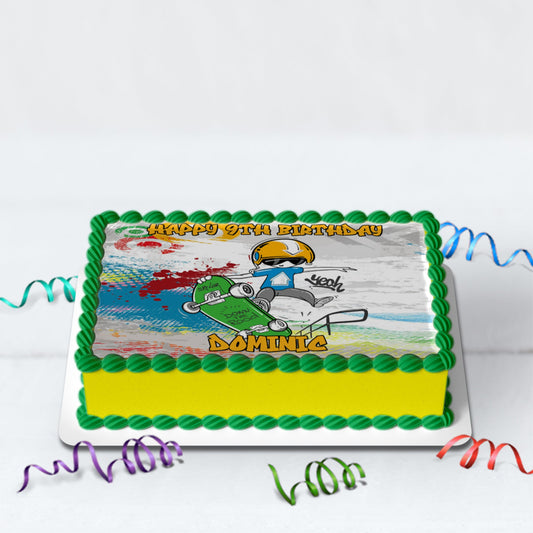 Rectangle Personalized Sheet Cake Images with Skateboard Theme - Add a Unique Touch to Your Cake