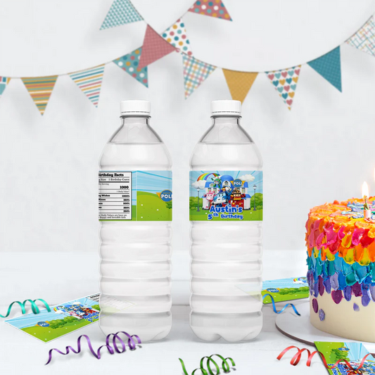 Robocar POLI Bottle Label - Custom Water Bottle Party Wrapper