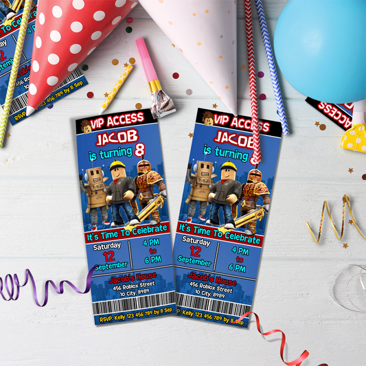Roblox Personalized Birthday Ticket Invitations - Exciting Way to Invite Your Guests