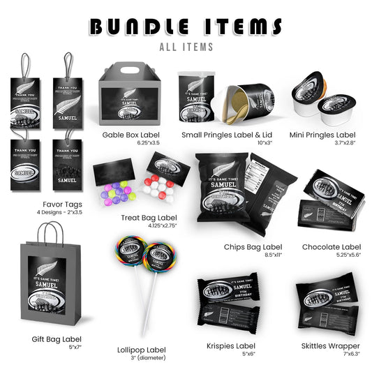 Rugby Personalized Digital Template Party Pack Bundle Editable Printable Party Decorations