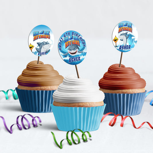 Shark-Themed Personalized Cupcake Toppers - Bite-Sized Fun for Everyone