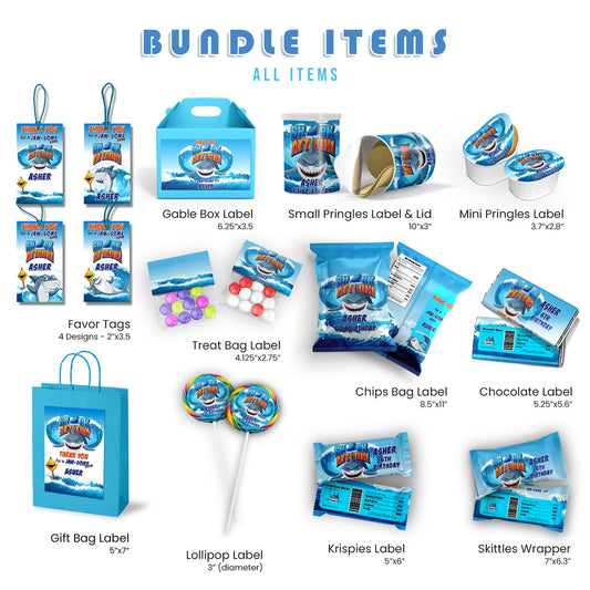Shark Personalized Digital Template Party Pack Bundle for Editable Birthday Decorations