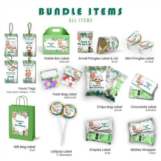 Sloth Treat Bag Topper Label Personalized Party Favor