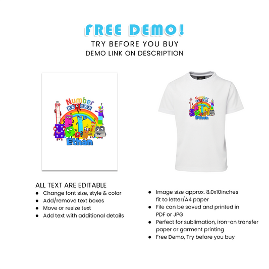 Sublimation T-Shirts with NumberBlocks Theme - Personalized for You