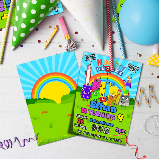 Birthday Card Invitations with NumberBlocks Theme - Personalized for Your Event