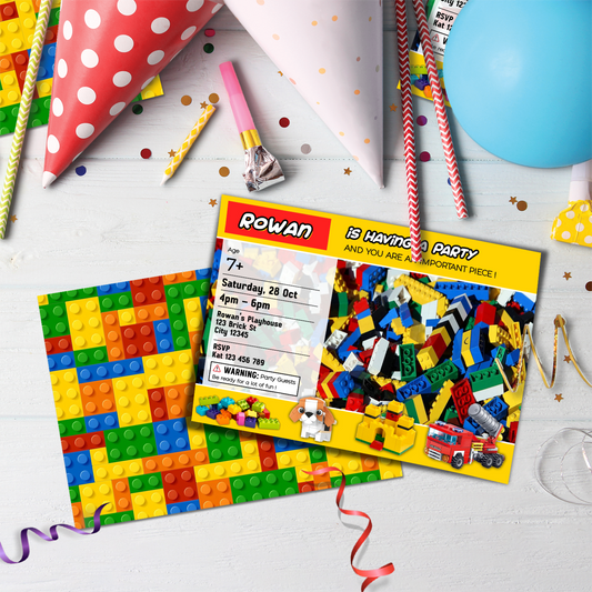 Birthday Card Invitations with Bricks, Building Blocks Personalization - Invite Your Guests in Style