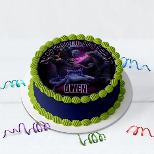 Unique Godzilla x Kong Cake Images - Perfect Round Fit - Personalize Your Dessert