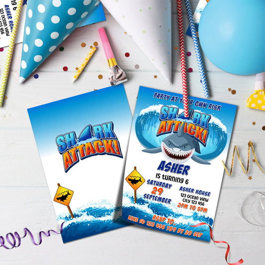 Unique Shark Birthday Card Invitations - Personalized for Your Special Day