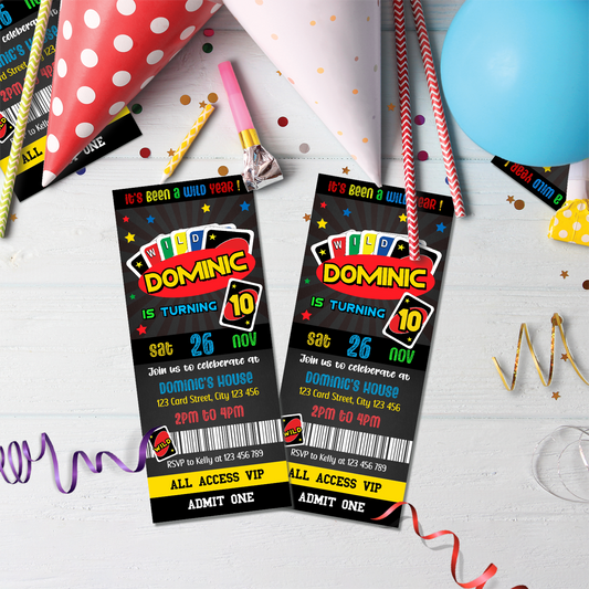 Unique Uno Birthday Ticket Invitations for Themed Celebrations