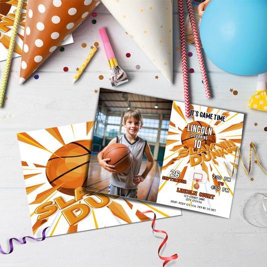 Capture Memories with Basketball Personalized Photo Card Invitations for Celebrations