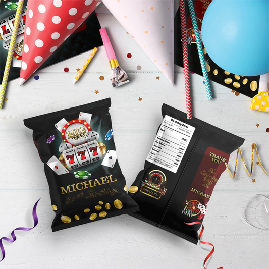 Casino Chips Bag Label - Personalized Casino Themed Chips Bag Labels for Events