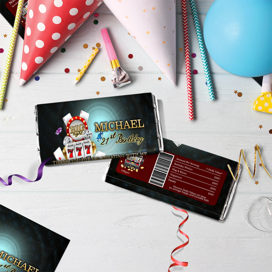Casino Chocolate Label - Custom Casino Themed Chocolate Labels for Parties