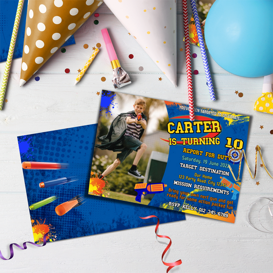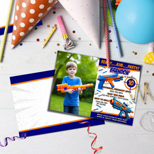 Capture the Fun: Nerf Personalized Photo Card Invitations for Cherished Memories