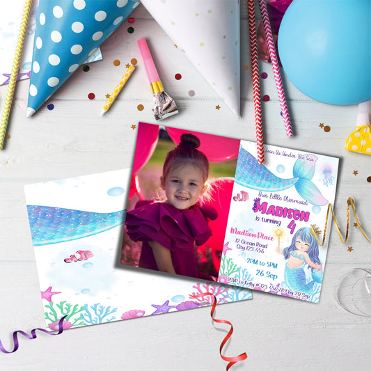 Capture Memories with Mermaid Personalized Photo Card Invitations - A Keepsake to Treasure