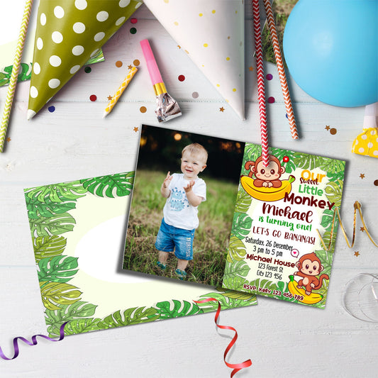 Capture the Moment with Little Monkey - Personalized Photo Card Invitations