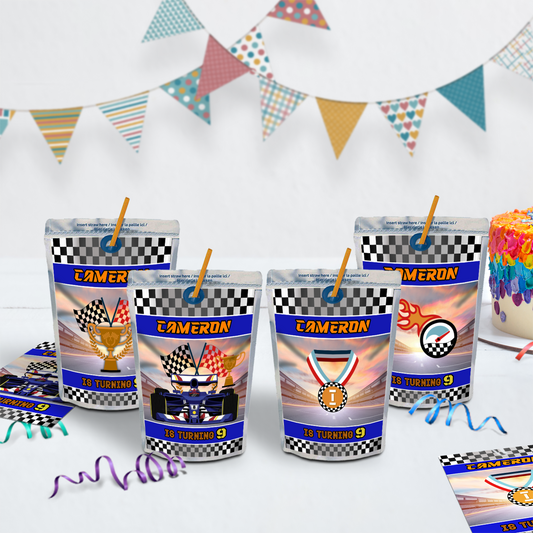 Caprisun Label/Juice Pouch Label for a Sporty Formula One Themed Kids’ Parties