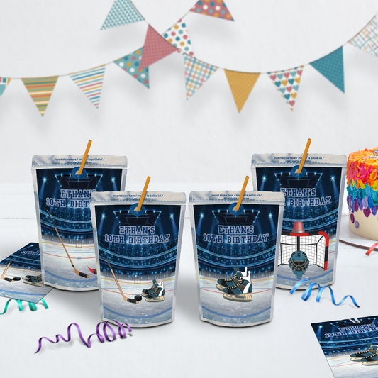 Caprisun Label/Juice Pouch Label for a Sporty Hockey Themed Kids’ Parties