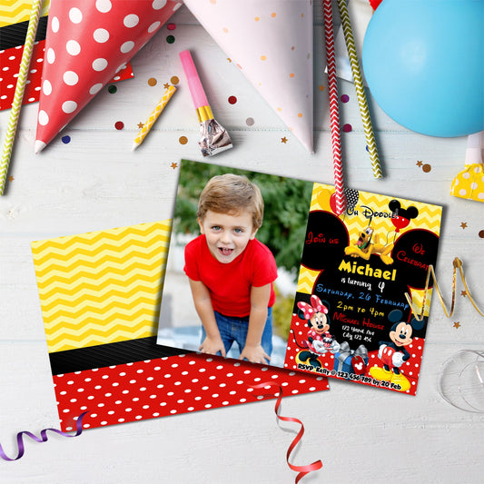 Capture the Magic with Photo Card Invitations Featuring Mickey & Minnie Mouse - A Keepsake to Remember!