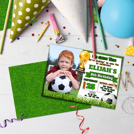 Capture the Excitement of the Game with Our Soccer Personalized Photo Card Invitations - A Keepsake Your Guests Will Cherish!