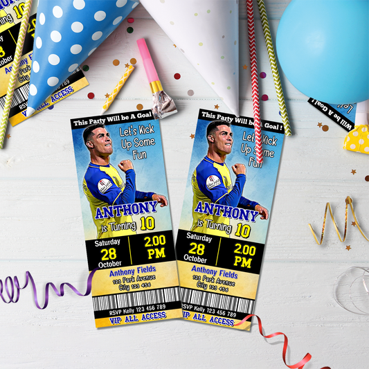 Cristiano Ronaldo Personalized Birthday Ticket Invitations - Make Your Event Unforgettable