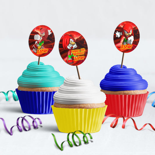 Delight Guests with Knuckles the Echidna Themed Personalized Cupcake Toppers