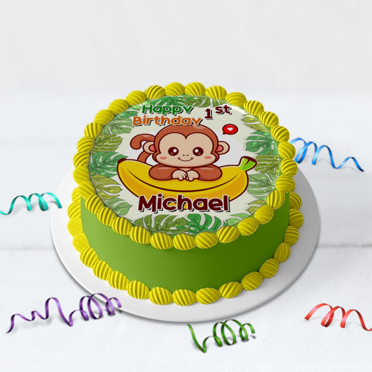 Delightful Little Monkey - Personalized Round Cake Images for Sweet Memories