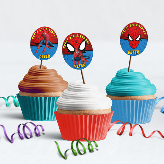Delight Your Guests with Spiderman Personalized Cupcakes Toppers - Ideal for Parties