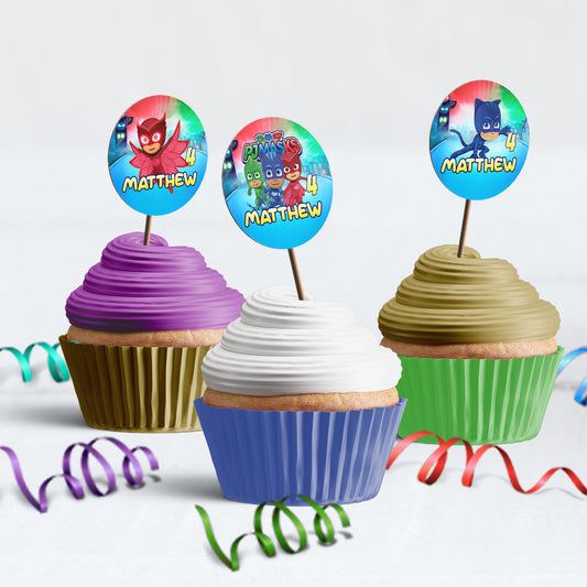 Delight Your Guests with PJ Masks Personalized Cupcakes Toppers - A Sweet Addition to Any Party